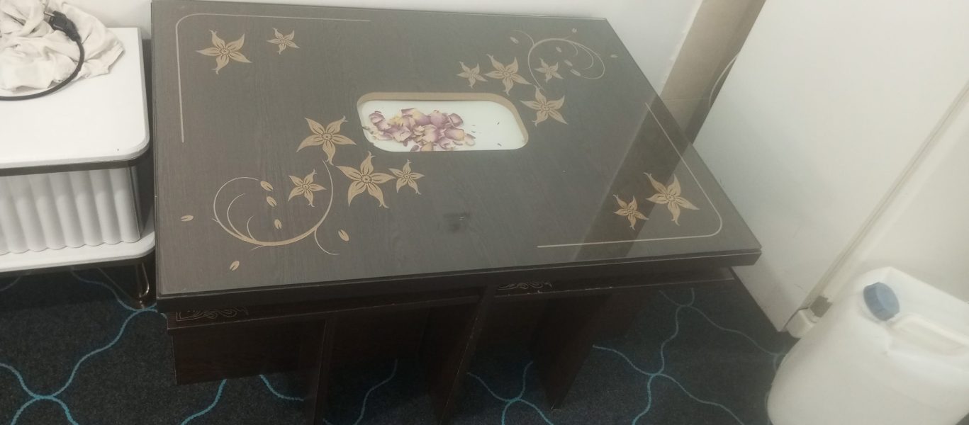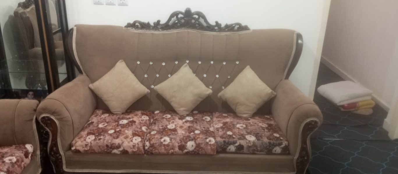 تختت خاب با تشگ 5سال زمانت مبل 7نفره با عصلی و میز وبالش میز ارایش جا کفشی پا تختی بوفه تزیی میز تلوزیون همه نو وسالم