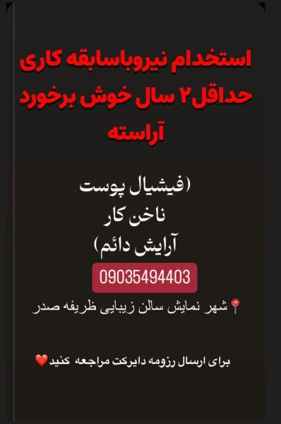 نیازمند ناخن کار ماهر 2سال سابقه کاری شهر نمایش به صورت اجاره و درصدی