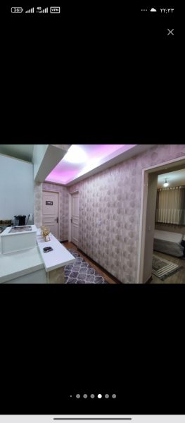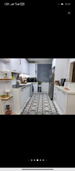 فول باز سازی شده همراه کابینت ام دی آف وکاغذ دیواری و کناف کاری شده سرامیک و پارکت خوش نقشه از سه طرف نور گیر بدون پرتی