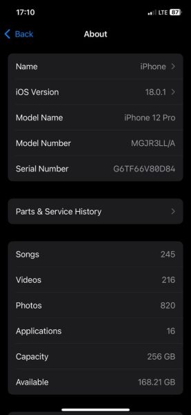 آیفون 12پرو 256 گیگ تک سیم باطری 80