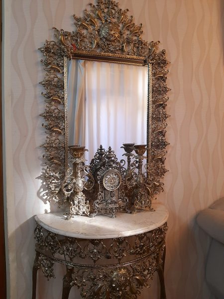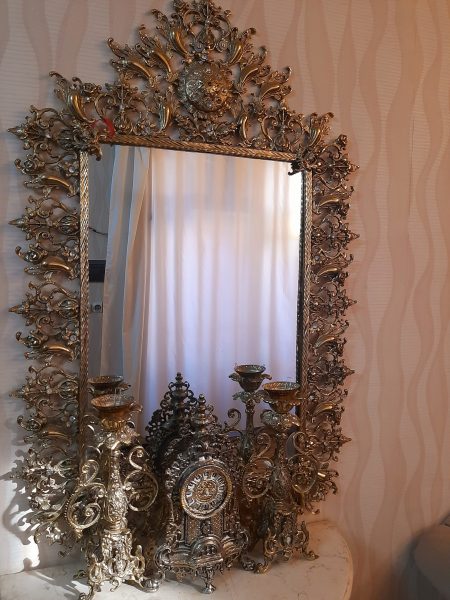 اینه شمعدان برنز با دو شمعدان و یک عدد ساعت