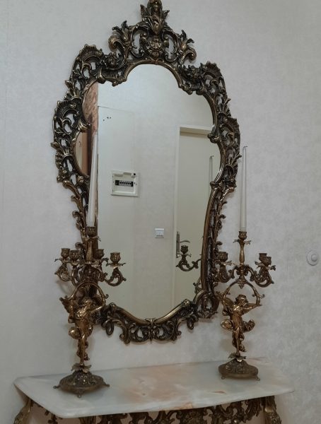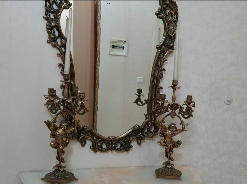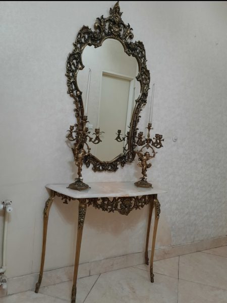 آیینه و کنسول و شمعدان برنز اصل و سنگین