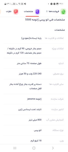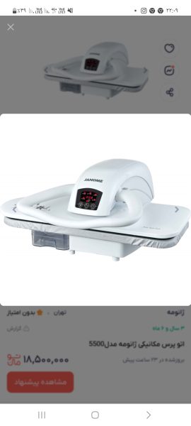 اتو پرس ژانومه مدل ۵۵۰۰ نو هستش و اصلا استفاده نشده. برا جهیزیه‌م بوده الان به علت مشکل مالی میخوام بفروشمش‌.