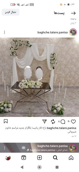 اجاره باغ تالار پانیسا ظرفیت 250نفر طبقه اول و 250 نفرطبقه دوم ، شامل دو طبقه زنانه و مردانه برای عروسی ، عقد و تولد…