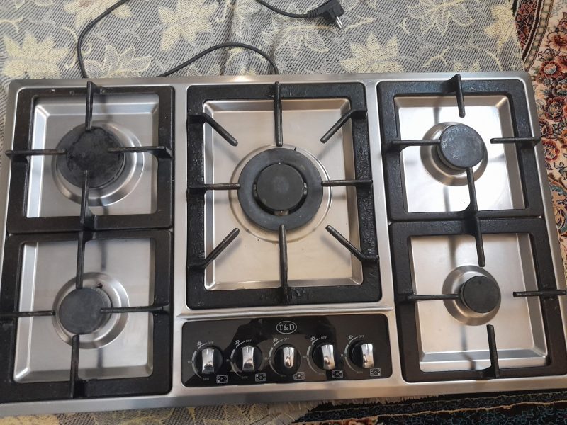 اجاق گاز استیل صفحه ای پنج شعله در حد نوع سالم خط خش هم ندارد