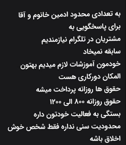 ادمین خانم و آقا برای پاسخ گویی به مشتریان در تلیگرام