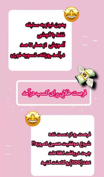 یک کار فوق العاده برات سراغ دارم که تو یک شرکت معتبر با همین گوشیت کار کنی و پورسانت عالی دریافت کنی 👍