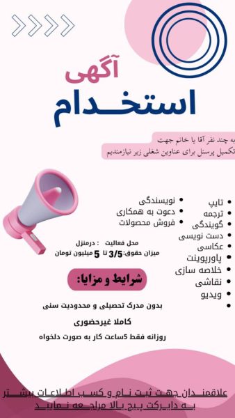 | نوع آگهی | استخدام میکنیم |