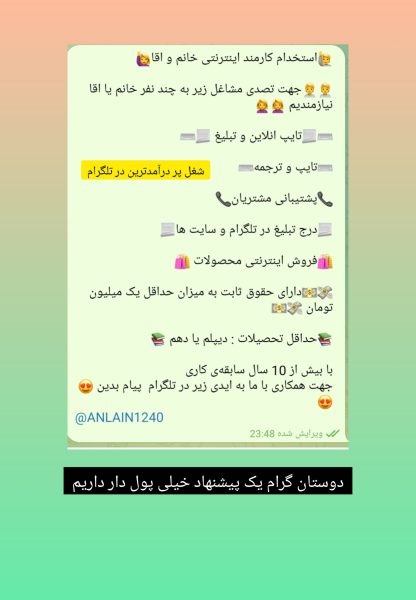 جهت همکاری با ما به ایدی زیر در تلگرام پیام بدین 😍😍