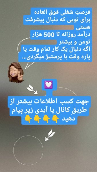 📋 در دوره های آموزشی کسب وکار اینترنتی در زمینه های تایپ / ادمینی کانال / گویندگی / تایپستوری دستی / تبلیغات بدون نیاز به فروش و دایرکتوری در تلگرام یاد میگیرید به دلخواه خود انجام میدهید. حقوق از روز اول آموزش به شما تعلق می‌گیرد.