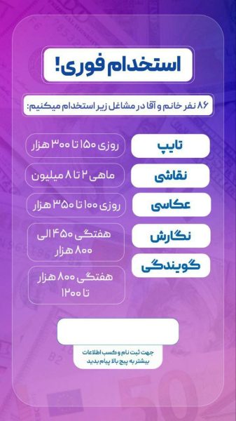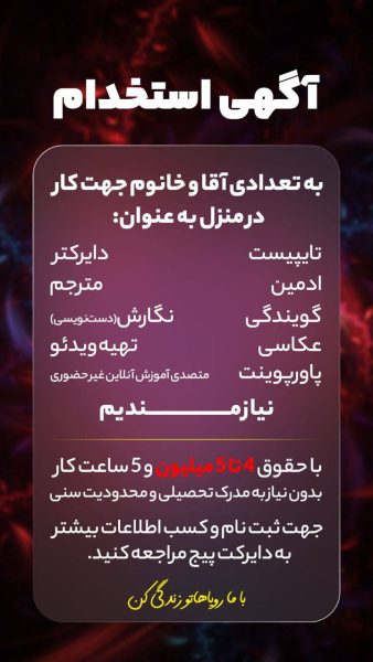 ✅ استخدام آقا و خانم در منزل به صورت دورکاری