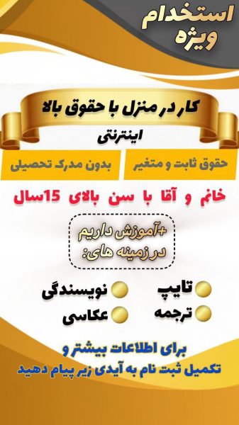 ✅ استخدام آقا و خانم در منزل به صورت دورکاری