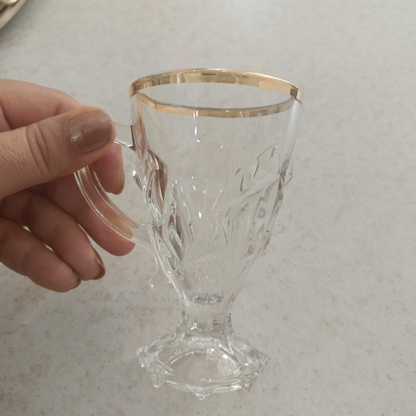 پنج دست استکان پایه دار کریستال بفروش میرسد قیمت هردست سیصدو پنجاه تومن میباشد