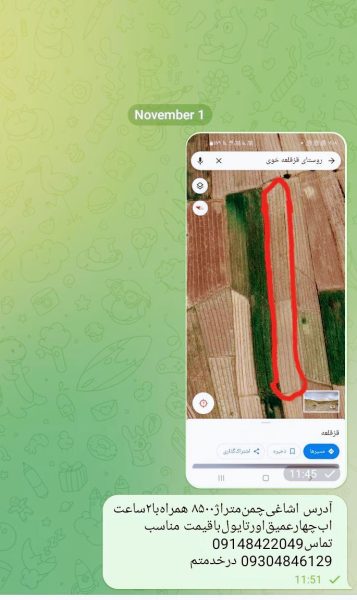 فروش زمین کشاورزی واقع ‌خوی‌در روستای ‌قزقلعه متراژ 8500 متر مربع است
