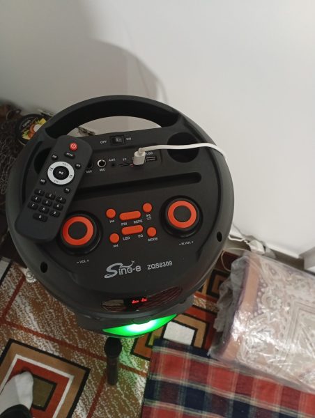 اسپیکر نو با قدرت واقعی ..بسیار منوی تنظیم کنترل دار میکروفن بی سیم دار …شارژی ….با صفحه مانیتور ………همراه شارژ میکروفن و کابل آن و شارژر اسپیکر و کابل فابریک ……..