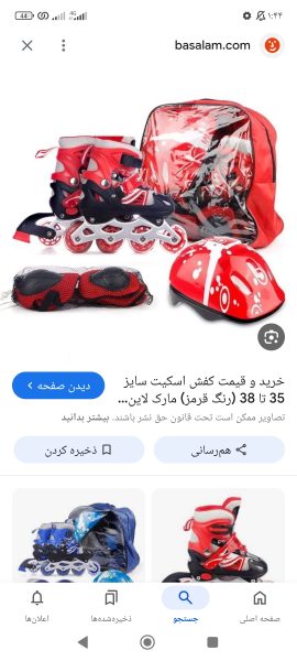 اسکیت مشکی قرمز سفید از سایز 38تا41با کلاه و زانو بند و آرنج بند …قیمت 2000000