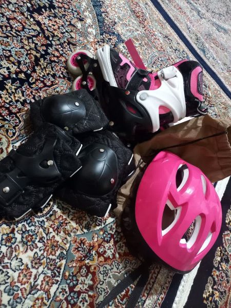 سلام اسکیت دخترانه سالم و نو هست فقط دوسه بار استفاده شده کلاه و وسایل های دیگش ک نو هست