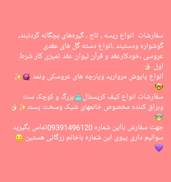 سازنده انواع تاج وریسه،هستم وانواع خلاقیت تطریز،عبا مانتو