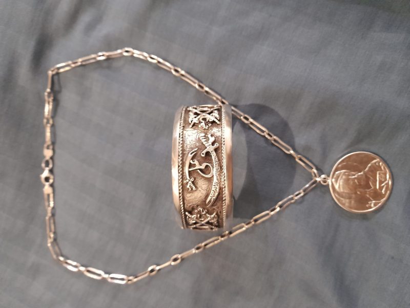 یک دستبندخلخال ویک گردنبند شمایل باهم به قیمت 10/500 تقریبا باهم 120گرم میشه