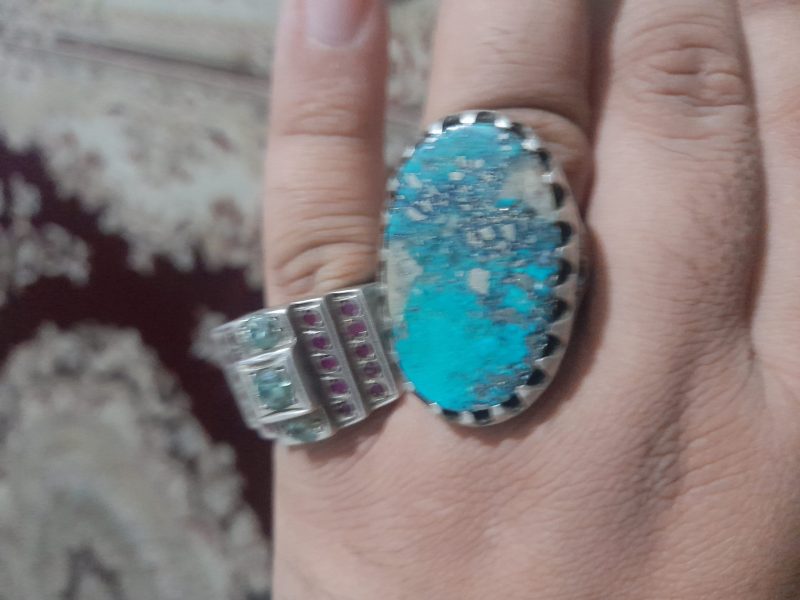 انگشتر فیروزه با سنگ توپاز درکنار رکاب 3/500تقریبا 37گرم