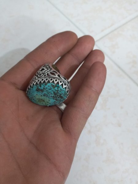 انگشتر فیروزه نقره کاره دست بسیار زیبا و جذاب حدودا ۴۵ گرم
