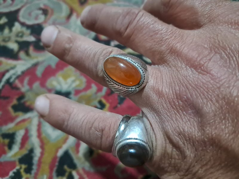 انگشتر عقیق پرتغالی کهنه عتیقه یمن تمام‌شن و طوق تراش دار رکاب مرحوم حاج محمدنامی