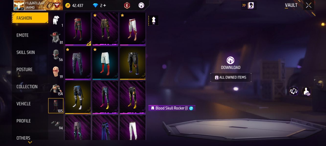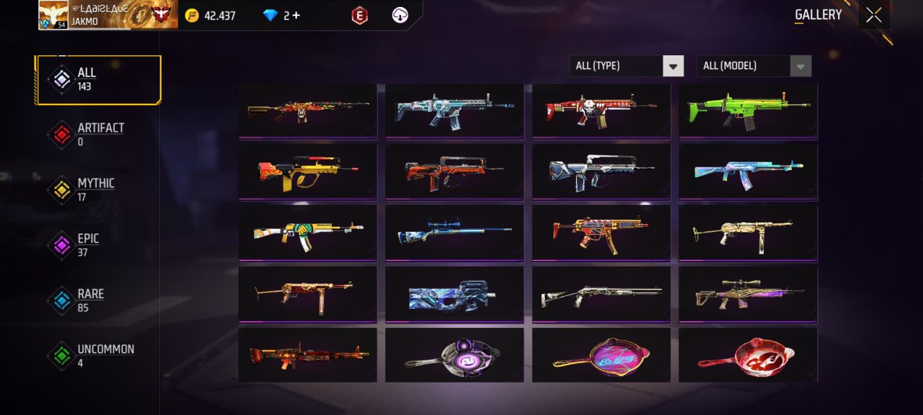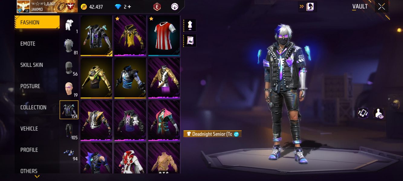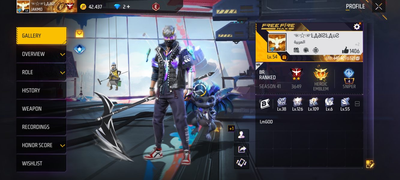 اکانت فری فایر لول 54