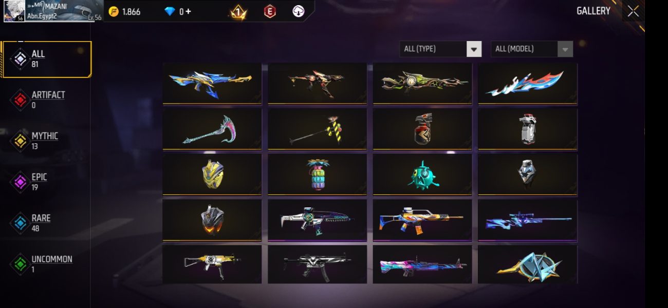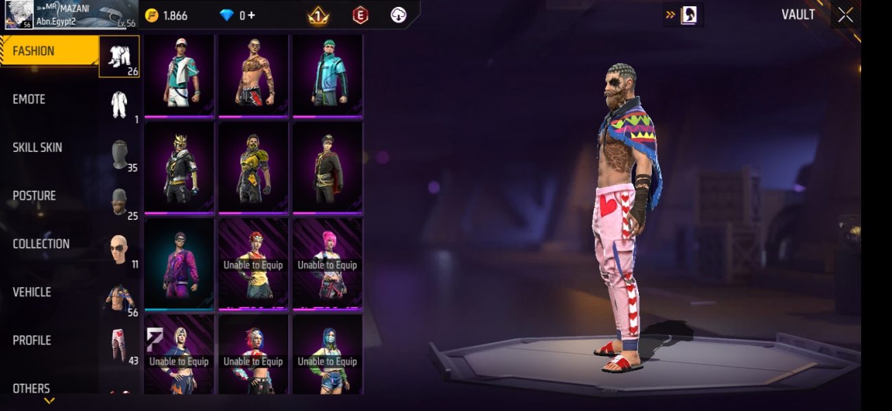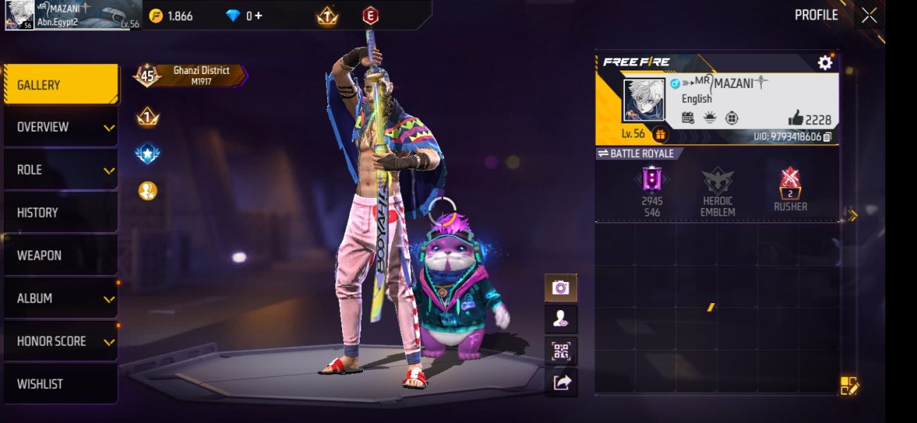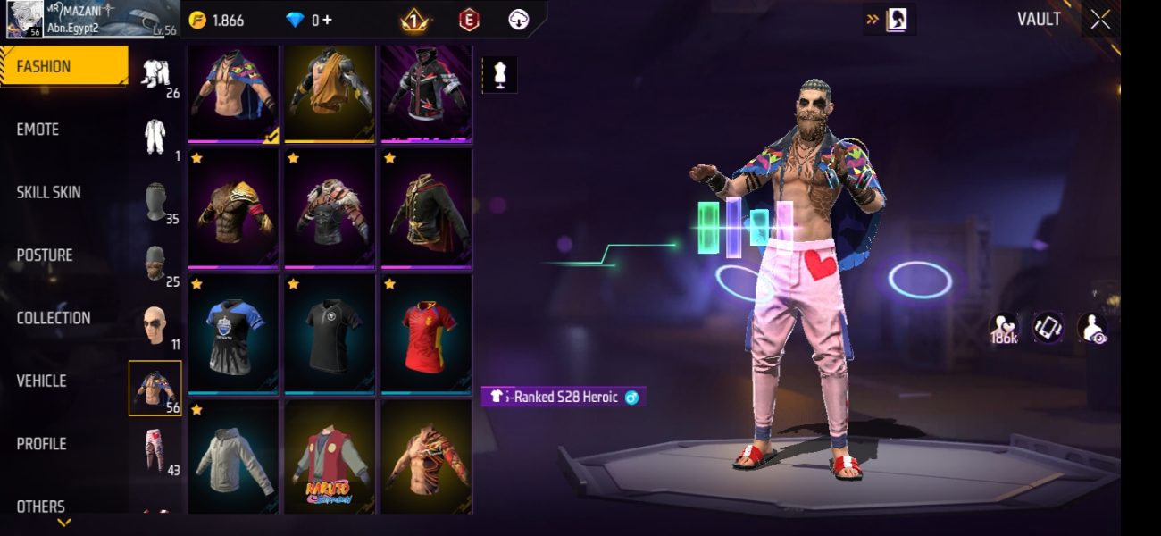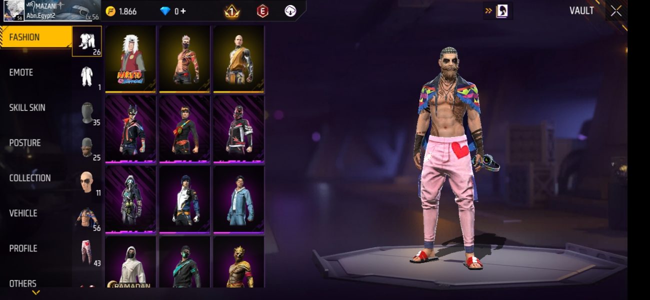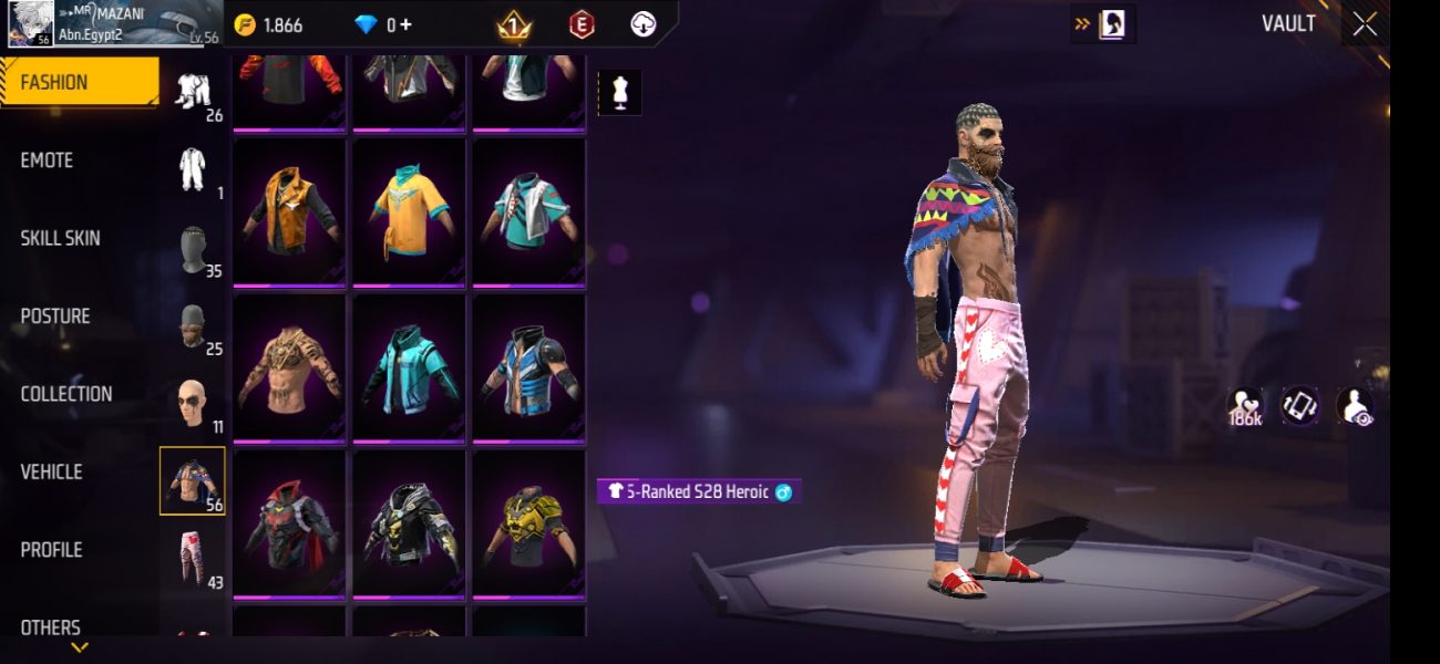 اکانت فری فایر دارای ۱۱ تا دنس ۵۶تا بالا تنه ۲۶ تا ست کامل لول ۵۶ هست ۱۰۰۰ خورده تا دنس ساحل ۲۲۰۰ لایک و بقیه داخل عکس ها هست