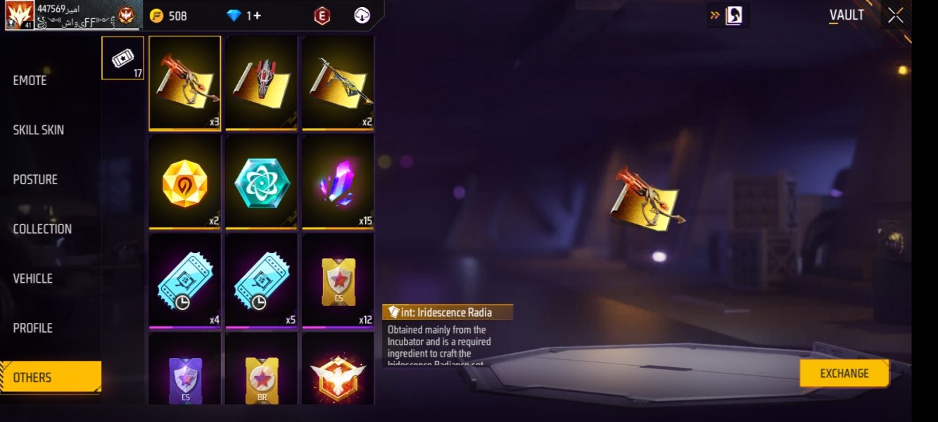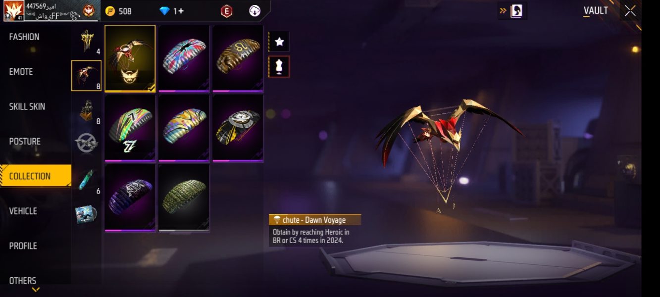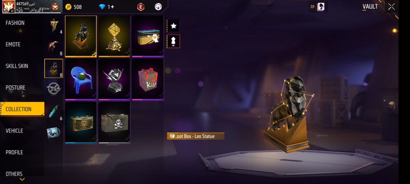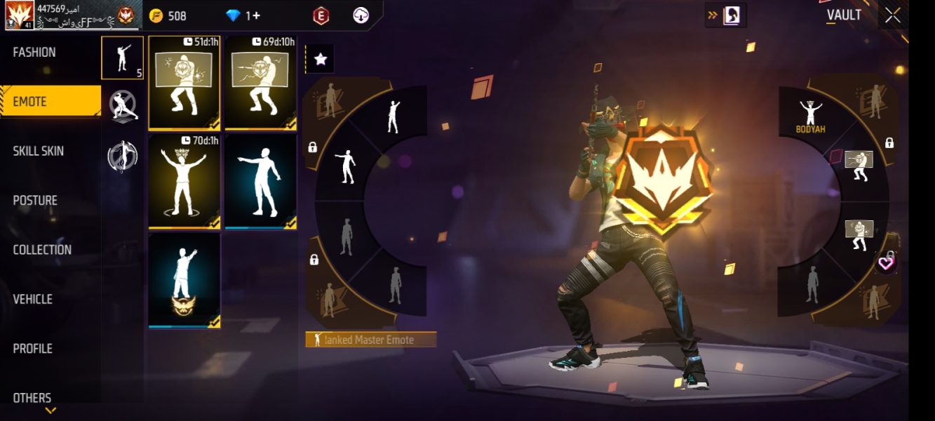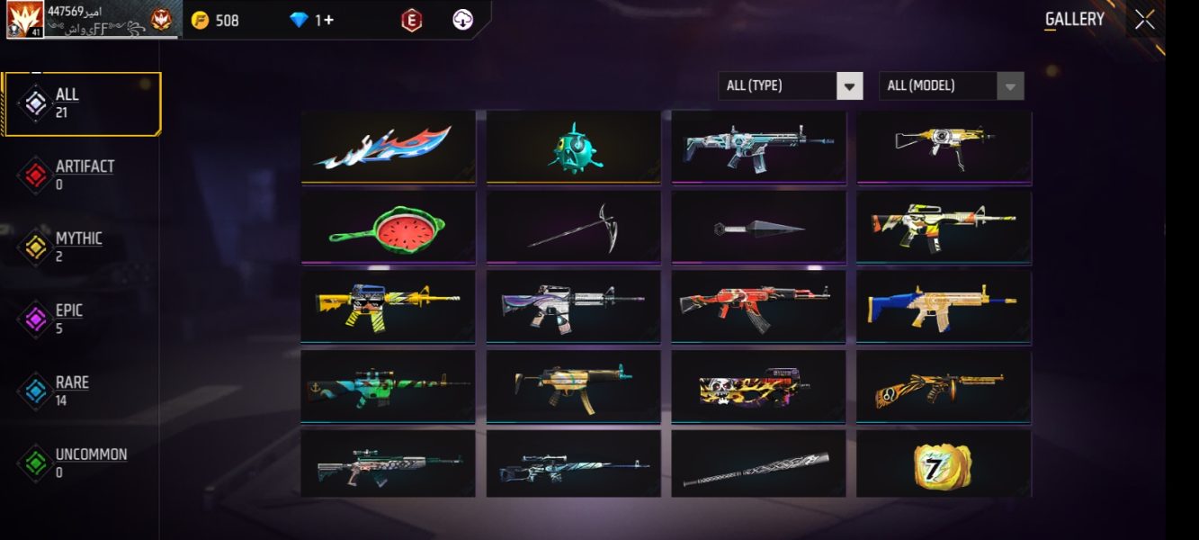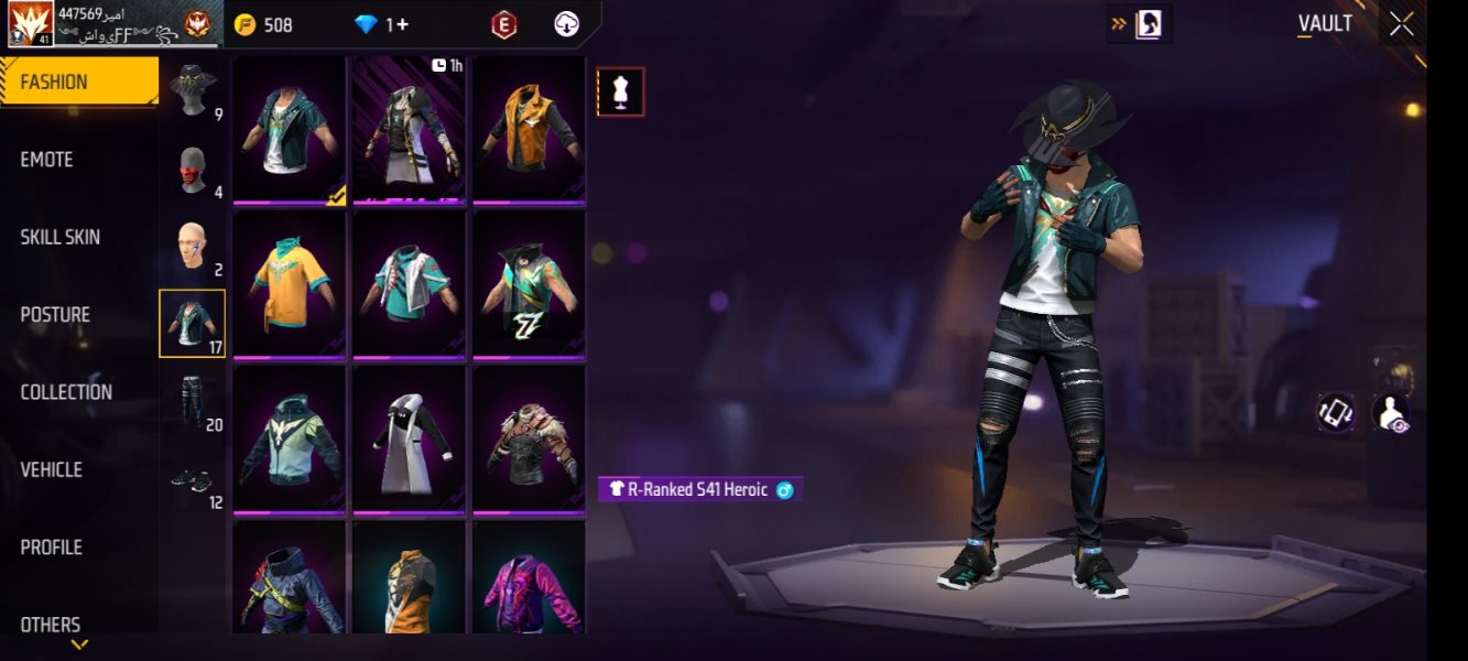 اکانت فری فایر که در آن تعداد زیادی اسکین است و تدادی زاد سد لباس داره در این ۱۱۰جم زده شده