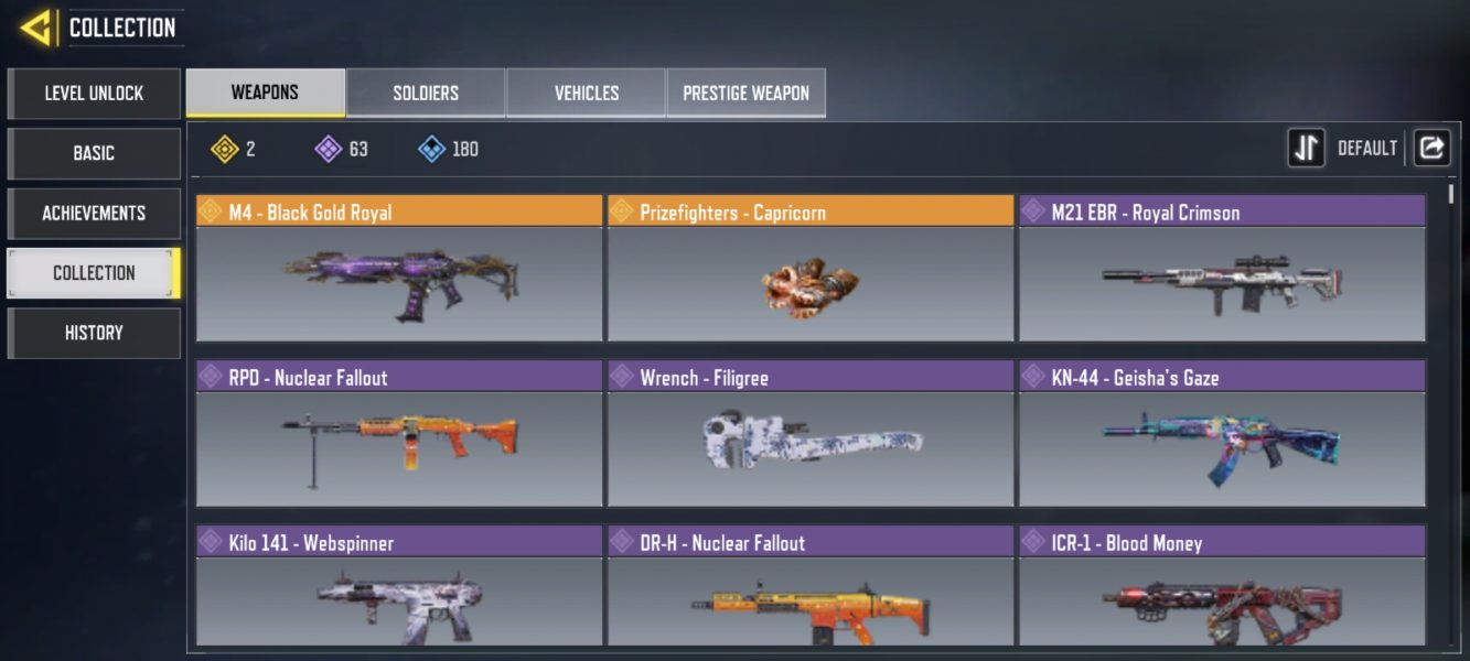 دارای دو تا گان لجندری و 63 تا گان اپیک