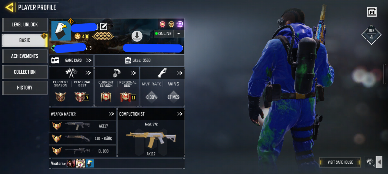 اکانت کالاف لول 400 7بار مولتی لجند شده و 11بار بتل لجند شده و هرکدام یک بار لجند 2شده اند