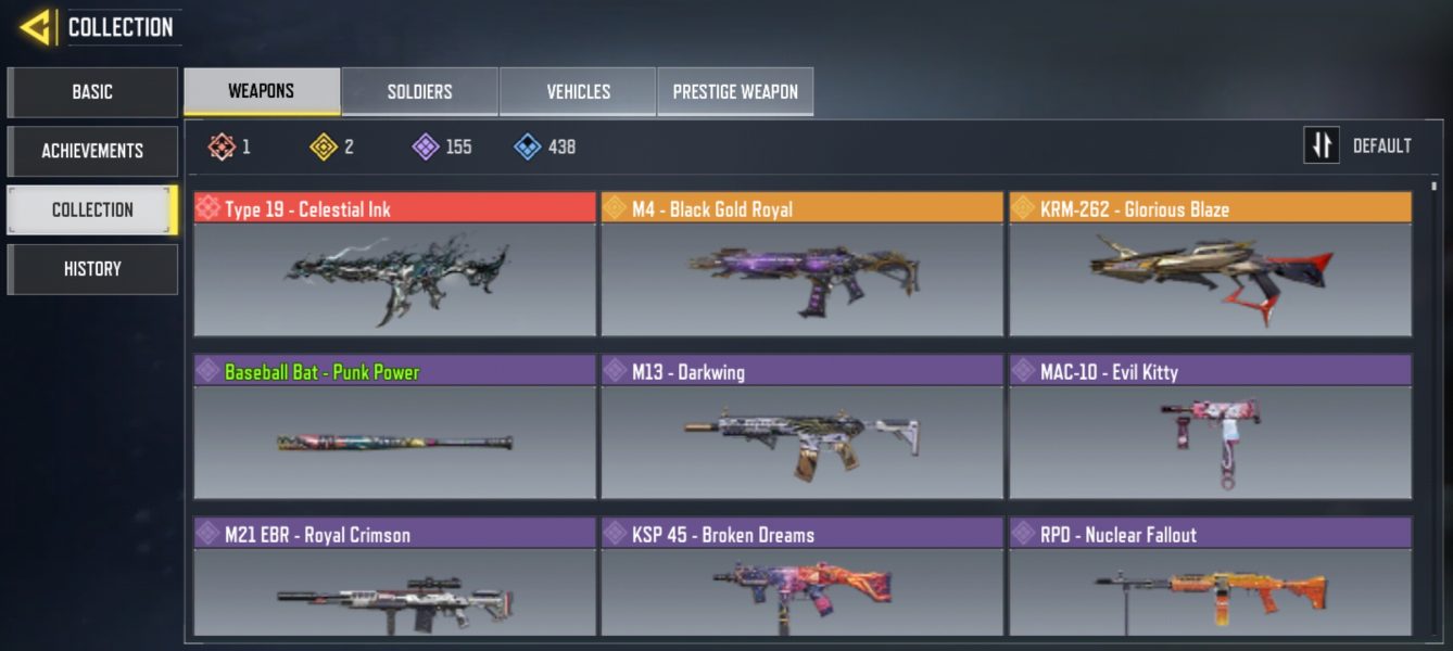 کریم لجند داره. ام فور لجند داره. تایپر ۱۹متیک فول گردونه هم داره. بالای ۳۰ تا دنس داره. بالای.۲۵ تا گان گلد داره. حدود ۱۲تا گان دایموند داره. لول ۳۵۰.