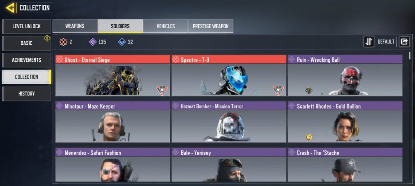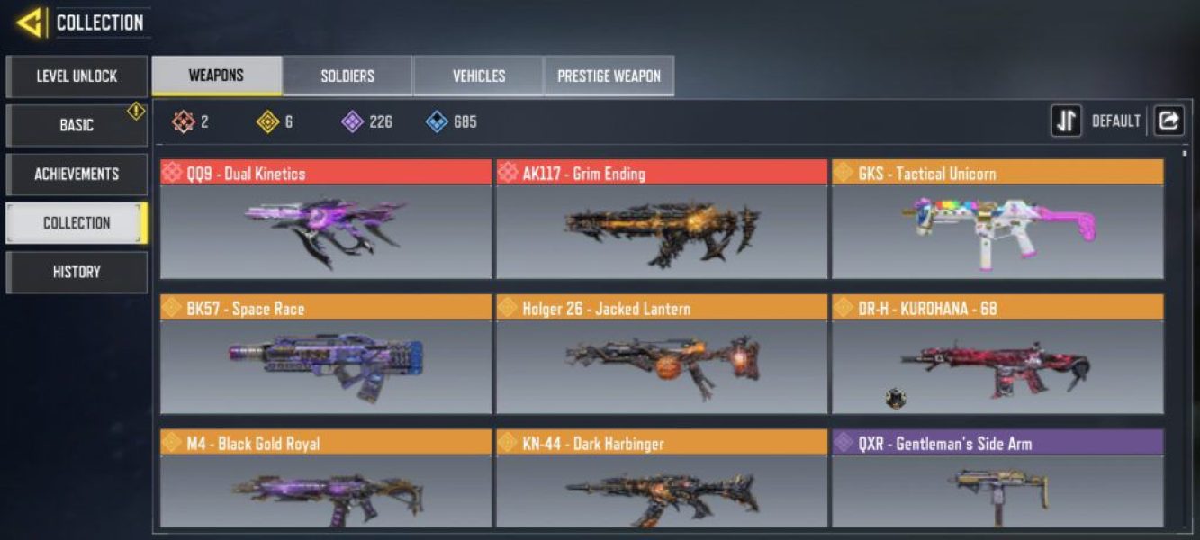 دایموند های باز شده: Ak117, AK47, KN44, Kilo, Oden, Grau, Type19, Switchblade, BY15, Krm