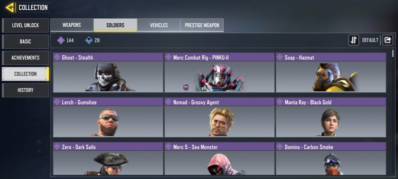اکانت دارای ۲۱۲تا گان اپیک۱۴۴تا اسکین چهارتا اسکین کریت وچند گان محبوب گردونه دارای یک اسکین گردونه خیلی سفید