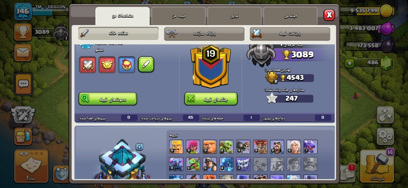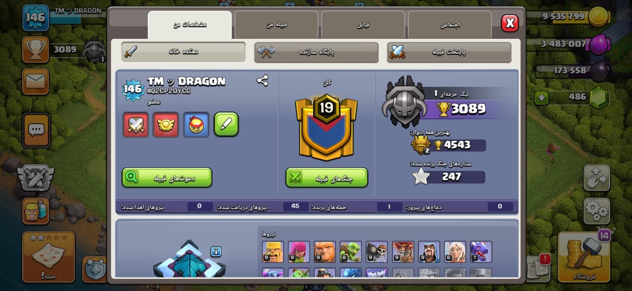 یک اکانت کلاش اف کلانز لول ۱۴۶ تان ۱۲ مکس بود زدم رفت ۱۳ همه مشخسات داخل عکس هست میتونید مشاهده کنید لطفا خریدار واقعی بیاد طاق هم با رویال میزنم و قیمت این اکانت ۴۰۰ تومن هست