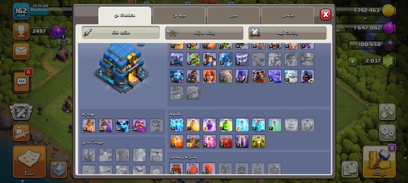 اکانت کلش ۱۲ پنج ستاره مکث لول ۱۶۲