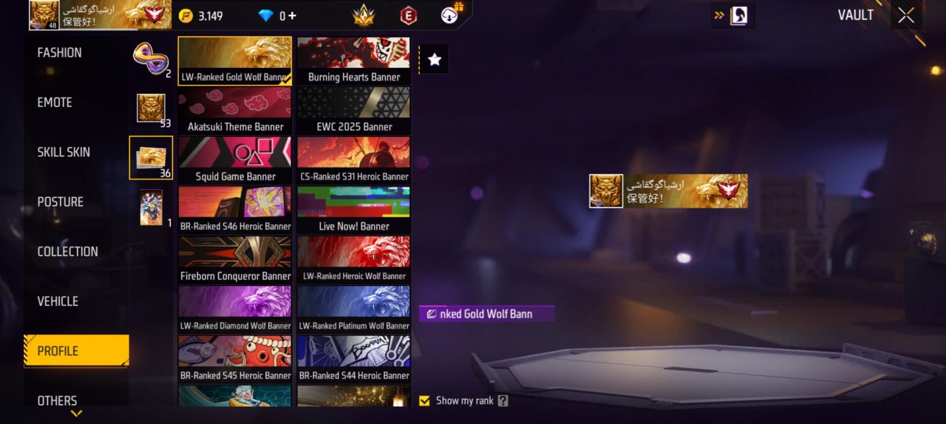 اکانت فری فایر که ۸ ماه دارم بازی میکنم و لول ۴۸ هست عکس های بیشتری هم هست