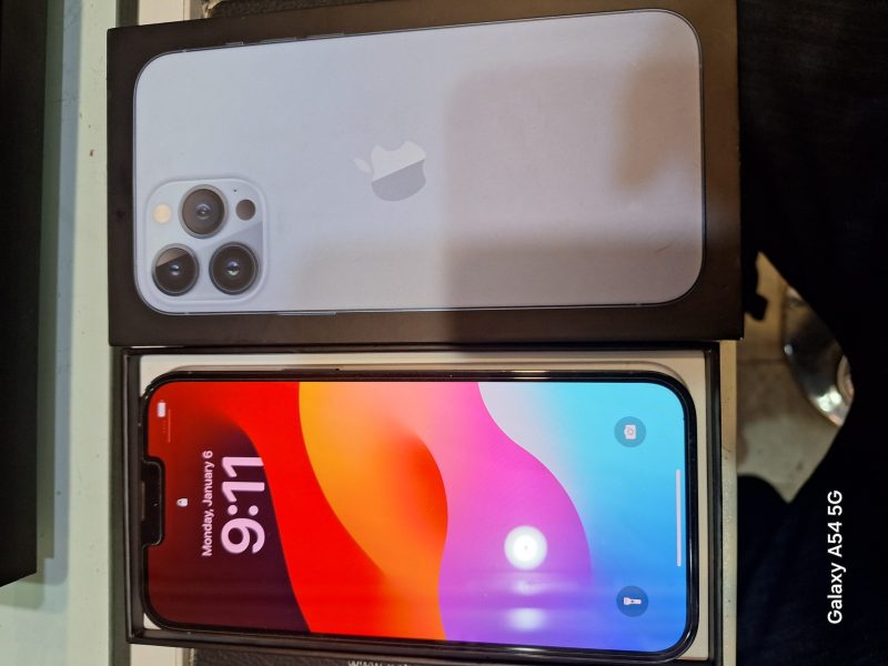 ایفون 13 پرومکس در حد نو باطری 85درصد بدون خط وخش وکاملا تمیز رجیستر نشده ولی ثبت در فرودگاه شده پک اصلی تک سیم کارت