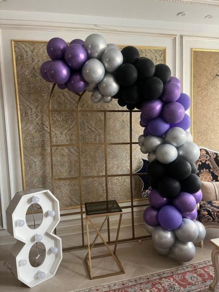 بادکنک آماده با رنگ بنفش، نقرهای، مشکی