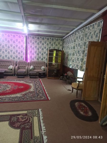 باغ با فضای دلنشین و آب هوای عالی و انواع درختان میوه و بارده و ساختمان شیک ب روز