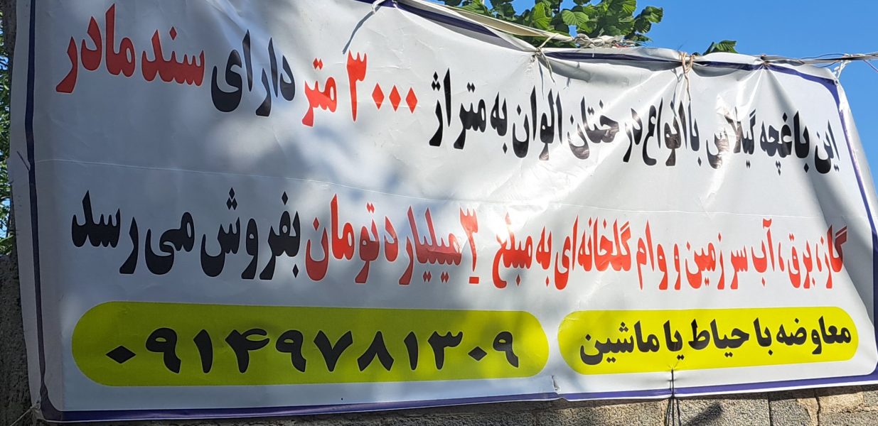 باغ داری درختان الوان داری وام ۳ میلیاردی گلخانه ای از جاده اصلی دویست متر فاصله دارد بالاتر از فرودگاه روستای تازه کند قشلاق