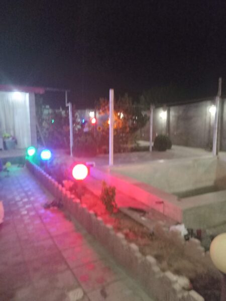 خانه ویلایی ۳۷۰متر۶۰ متر زیر بنا حیاط دوتا ماشین جا میشه استخر ۴در۵ بانور پردازی عالی دوتا درب حیاط یک زمین ۳در۷ پشت اتاق خواب هست که میشه اتاق خوابش کرد به سر دادابشار مصنوعی دارای ۲۰تا درخت میوه کوچه ۹متری پول یک ماشینه سلام امتیاز ات کامل علت فروش مهاجرت آدرس حیدراباد کارخانه قند امیرالمؤمنین ۱۲ممیز۹