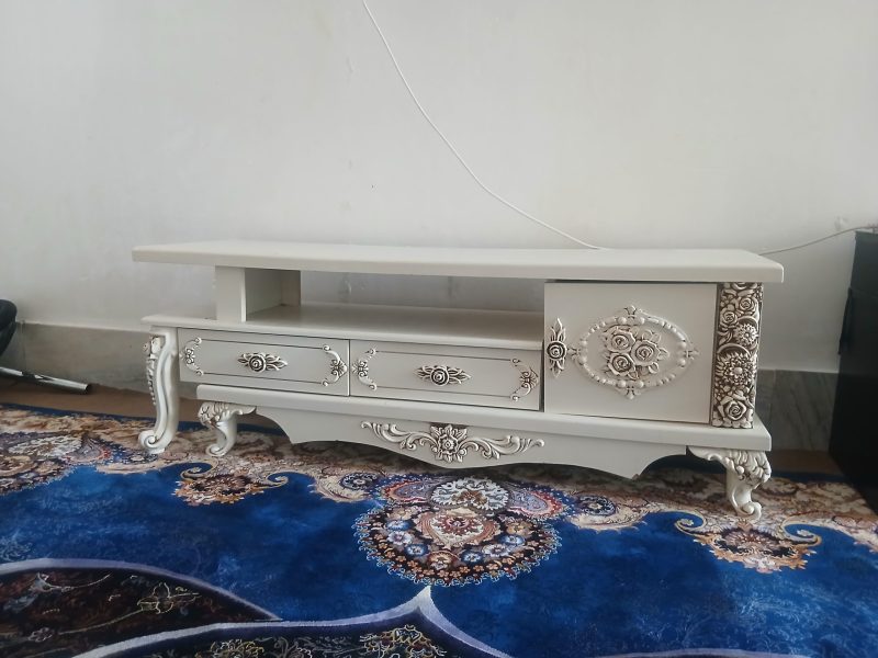 دو عدد میز تلویزیون یکی به رنگی سفید ۱۵۰۰۰۰۰ تومان معمولی است یکی به رنگی مشکی قهوه به مبلغی ۲۰۰۰۰۰۰تومان آدرس شهریار شهرک بهاران ویره کوچه کارواش شماره تماس 09909529334