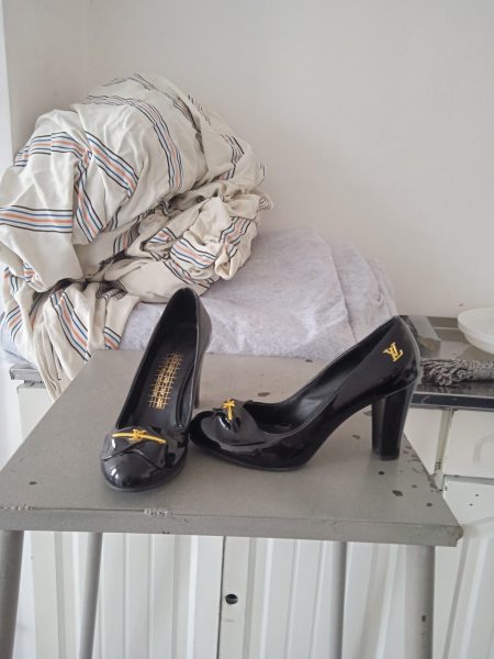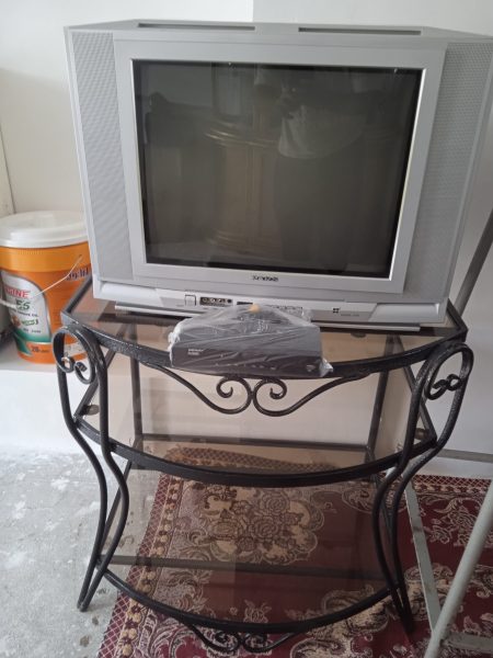 تلویزیون و زیر تلویزیون در حد نو همراه یک جفت کفش زنانه پاشنه بلند قیمت 8000000هزارتومان