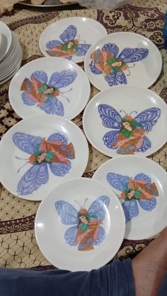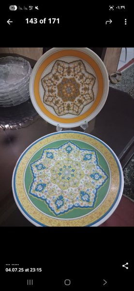 تعداد ۲۰۰ عدد بشقاب و پیش دستی و خورشتخوری میوه خوری ملامین قدیمی فروشی درهم همه با هم فروشی دونه ۳۵