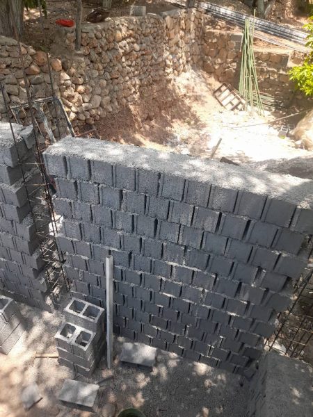 بلوک چینی، سنگ چینی، دیوار سنگی، پلاستر سیمان، سقف و ستون
