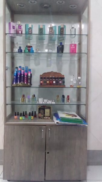 دو عدد کمد چوبی دکوری برای مغازه با طبقات شیشه ای