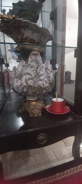 مینی بوفه فقط شیشه سمت چپ ی ترک داره..ب بعد سالم همراه ۴ ظرف سنگی اصل