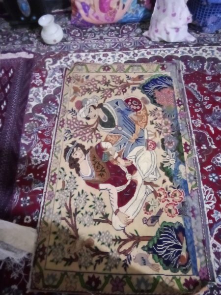 یک عدد تابلوفرش قدیمی با بافت پشم باطرح عکس لیلی ومجنون که قدمتش حدود صدسال میباشد قیمت حدودا هفده تاهیجده میلیون تومن هست درضمن معاوضه هم میکنم این تابلو فرش لیلی مجنون دراستان خراسان جنوبی شهرستان نهبندان میباشدتلفن ۰۹۹۲۹۴۱۲۰۷۷و۰۹۹۳۶۲۶۵۶۱۹