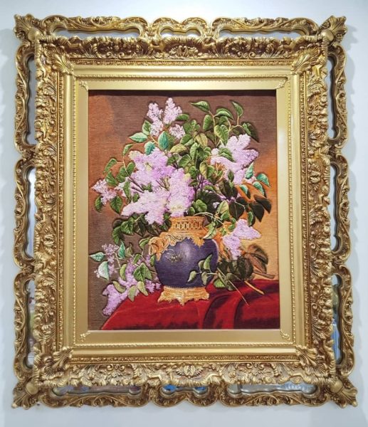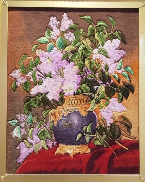 تابلو فرش نیم ابریشم طرح گل و گلدان